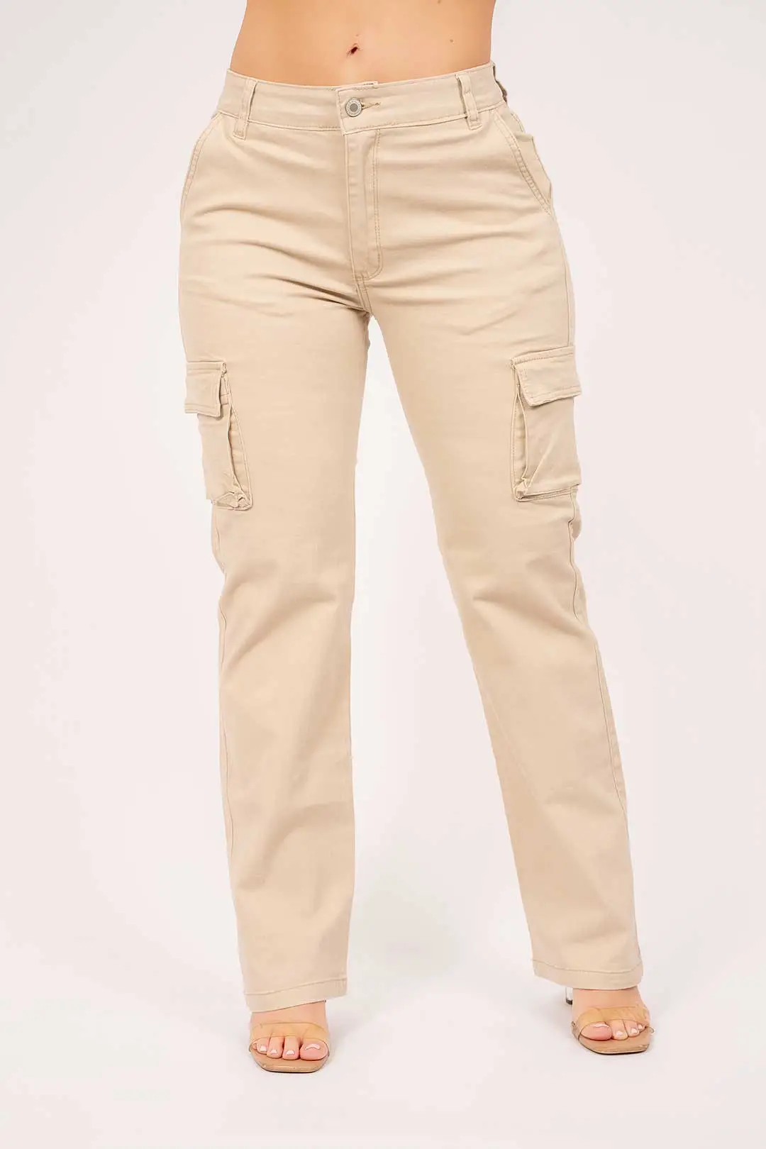 Cargo descaderado en drill que cuenta con bolsillos laterales.