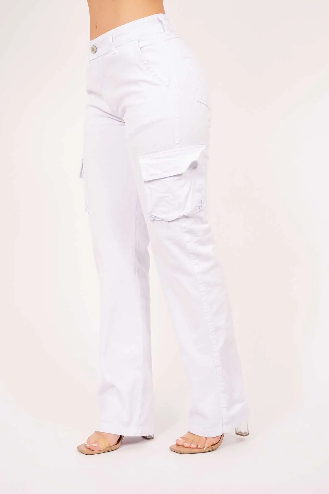 Cargo descaderado en drill que cuenta con bolsillos laterales.