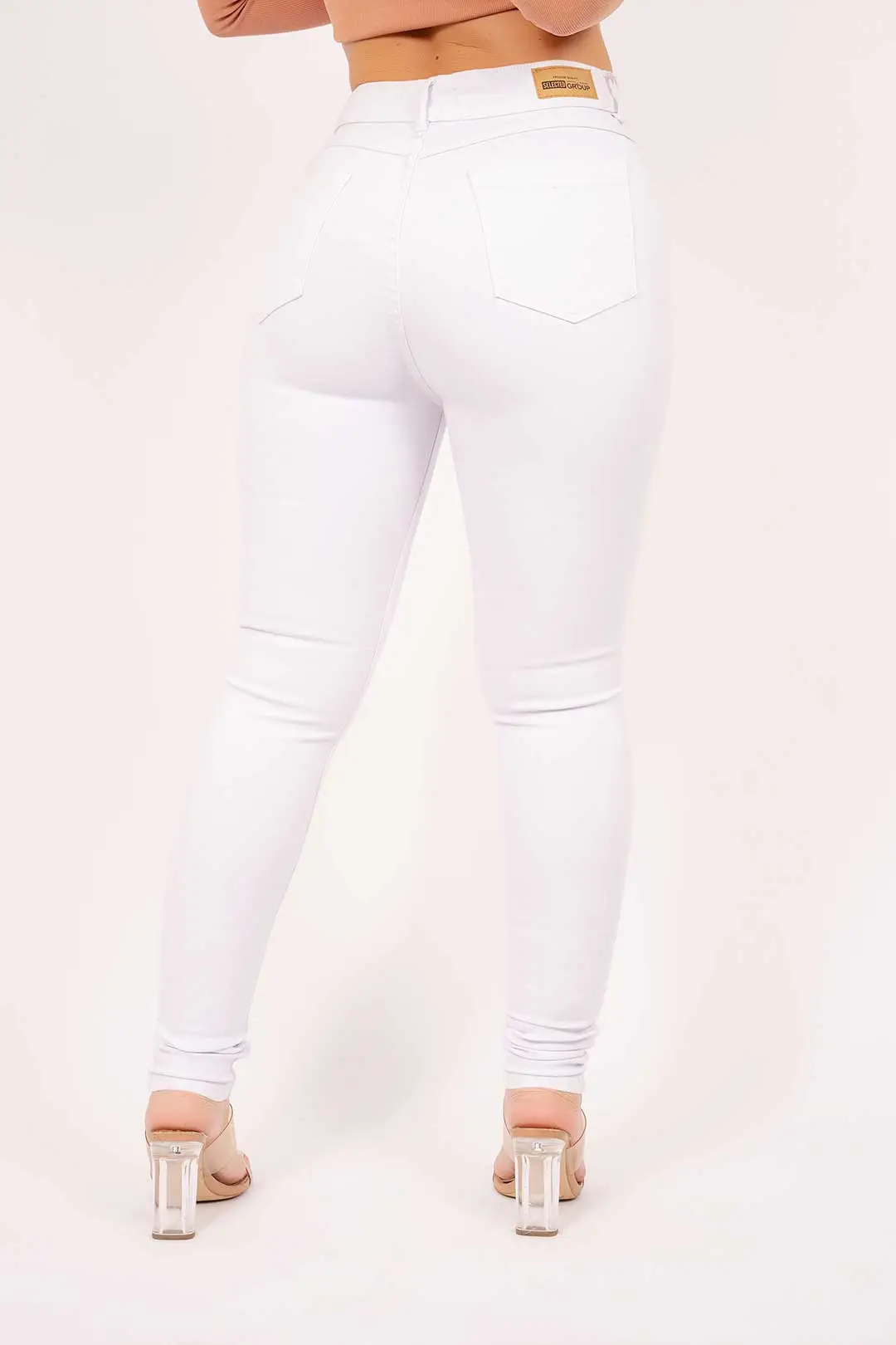 Jean skinny tiro alto blanco.