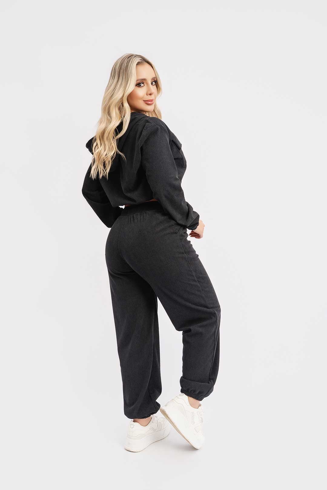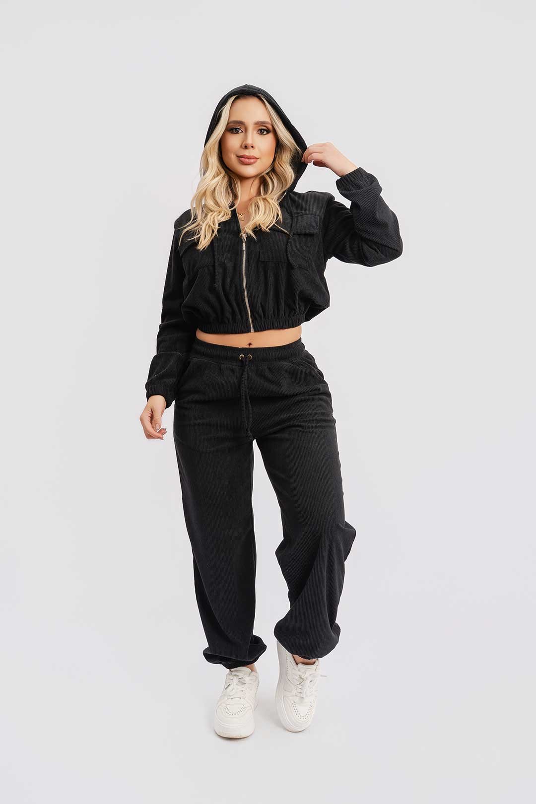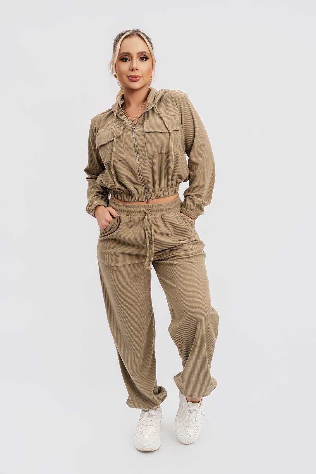 Set de corduroy de dos pieza, cuenta con chompa y pantalon tipo jogger.